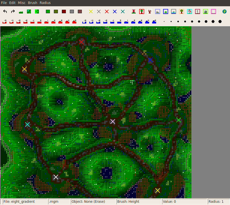 XML files, and the 2D map editor is very easy to grasp. Especially with the recent usability improvements in Megaglest (and included Linux editor binaries) it is possible to create a simple but nice map in a matter of minutes!